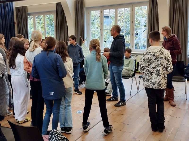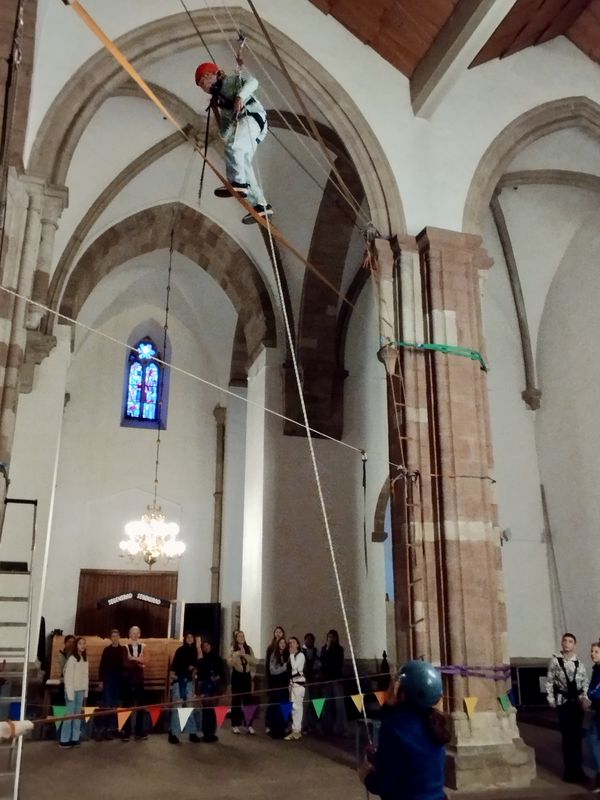 Der gesamte 7. Jahrgang besuchte aufgeteilt in zwei Gruppen Ende Oktober die St. Magni Kirche. Im Gegensatz zum gewohnten Anblick fehlten bei unserem Besuch jedoch die Kirchbänke. Stattdessen fanden wir einen Stuhlkreis vor und zwischen den Säulen waren Kletterseile gespannt. Der Kirchraum als Kletterabenteuer – wie passt das zusammen?!
