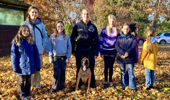 Die Sechstklässlerinnen Minu und Salome berichten vom Ausflug der AG ‚Rund um den Hund‘ bei der Hundestaffel der Polizei in Querum: