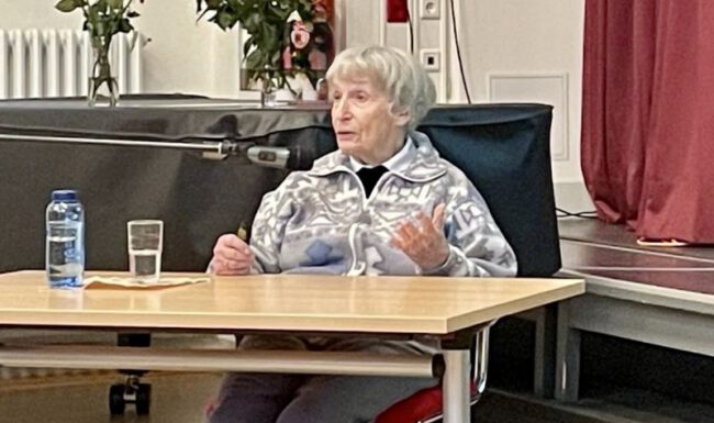 Wir sind sehr dankbar, dass uns die Zeitzeugin Dr. Michaela Vidláková aus Prag in diesem Jahr zum 7. Mal besucht hat. Die Neunzigjährige sprach vor dem 9. Jahrgang von ihrer Kindheit, von Ausgrenzung und vom Vernichtungswillen der Nazis, den sie als jüdisches Kind in Prag und dann im Ghetto Theresienstadt erfahren hat. Unsere Schülerinnen und Schüler erfuhren eindrücklich, was dies mit jungen Menschen macht und wie sie nur durch eine Reihe von Zufällen überleben konnte. Frau Vidláková zeigte sich uns als eine offene, mutige und lebendige Frau, die besonders durch ihren Optimismus beeindruckte.