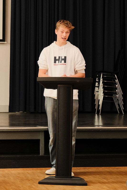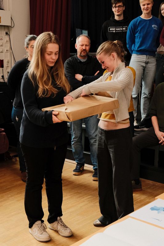 Am 17. September 2025 ging es los. Es ging darum, das Projekt ‚Into the Box‘ in das Rahmenthema ‚Erinnerung in der Zivilgesellschaft heute‘ einzubetten und sich mit der Hamburger Künstlerin Sigrid Sigurdsson und ihrer Arbeit ‚Offenes Archiv‘, die sie in der Gedenkstätte Schillstraße realisiert hat, vertraut zu machen. Dort werden seit 1996 mit blauem Leinen bezogene Archivboxen von der Stadtgesellschaft gefüllt. Mehr als 130 Boxen sind es inzwischen; eine davon soll künftig von der Gaußschule sein.